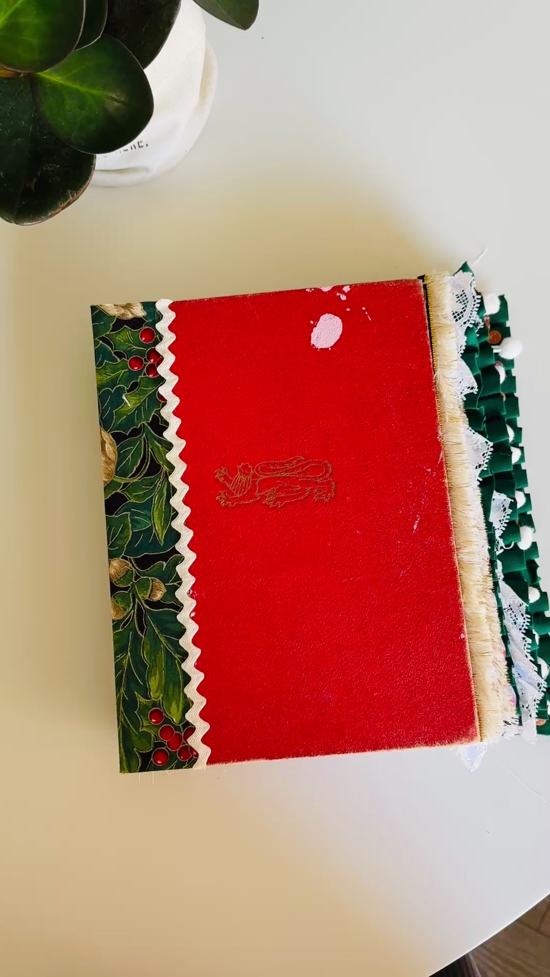 This one-of-a-kind Christmas themed handmade junk journal crafted with care and imagination, it features 45 pages across 3 signatures, each filled with personality and texture. Nearly 90% of the materials have been lovingly thrifted or repurposed, giving new life to forgotten treasures and turning them into art you can write in. The spine is decorated with beads, with a removable charm to make it personal and playful, just like the journal itself.